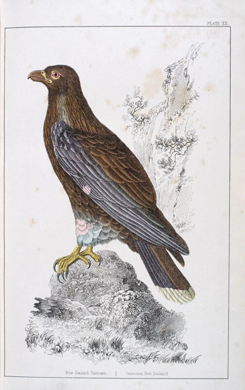 6 vols: ill; 4to. (22 cm). Colour plates. Green cloth boards stamped in blind and gilt. Gilt-stamped to spine, corners rubbed, spines 'pulled' but otherwise in good condition. MS signature of "Catherine M. Thomas, June and December 1884" to front free endpapers in vols 1 and 2. Coloured plates in order: Volume 1. 1. Title page. 2. Horses; (1) Race Horse (2) Cart Horse. 3. Zebra: Datiw (female) 4. Zebra: Dziggtai. 5. Zebus: (1) Common Zebu (male) (2) Common Zebu (female) (3) Small Zebu. 6. Cattle: (1) Suffolk Ox (2) Herefordshire Bull. 7. Alpaca Sheep: (1) Vieugna of Peru (2-3) Argali or Big Horn. 8. Antelopes: (1) Addax Antelope (2) Sable Antelope. 9. Deer: (1) Long-tailed Deer (2) Virginian Deer (3) Fallow Deer. 10. Hogs: (1) Babyronessa (2) Chinese Hog (3) White-lipped Hog (4) Collared Hog. 11. Big Cats: (1) Tiger (2) Puma (3) African Lion (4) Lioness and Cubs. Volume 2. 12. Jaguar. (female) 13. Leopards: (1) Leopard (2) Neuwied Cat (3) Clouded Tiger (4) Ocelot (5) Sumatra Cat. 14. Jackal & Wolves: (1) Cape Jackall (2) American Grey Wolf. 15. Dogs: (1) English Setter (2) Old English Setter (3) Cocker (4) King Charles Spaniel (5) Comforter. 16. Weasels: (1) Weasel (2) Ermine (winter) (3) Pine Martin (4) Vison. 17. Dogs: (1) Skye Terrier (2) Blood Hound. 18. Weasels: (1) Zibet (2) Fossane (3) Malacca Genet. 19. Weasels: (1-2) Ermine (winter) (3) Harwick's Weasel (4) Java Ferret. 20. Squirrels: (1) Fire-footed Squirrel (2) Hottentot Squirrel. 21. Squirrels: (1) American Black Squirrel (2) Chickapee Squirrel (3) Grey Squirrel. 22. Hedgehogs: (1) Silky Tenrec (2) Half-spined Tenrec (3) Prickly Tenrec (4) White-fronted Hedgehog (5) Common Hedgehog. 23. Hedgehogs: (1)Swarthy Tendrac (2) Long-eared hedgehog (3) Armed Tenrec. Volume 3. 24. Bats: (1) Cayenne Bat (2) Notch-eared Bat (3-4) Slender Bat (5-6) Rufous Bat. 25. Bats: Tonga Rougette. 26. Seals: (1-2-3) Common Seal (4) Fetid Seal. 27. Monkeys: (1) Royal Howler (2) Golden-tailed Howler. 28. Monkeys: (1) Black Howler (female and young) (2) Black Howler (male) (3) Ursine Howler. 29. Galagos and Tarsiers: (1) Little Galago (2) Podje Tarsier (3) Senegal Galago. 30. African Elephant (young). 31. Couscoos: (1) Rapouna Couscoos (2) Cook's Couscoos. 32. Bears: (1) Black Bear of America (2) Brown Bear of Europe (3) Polar Bear. 33. Jerboas: (1) Ass-eared Jerboa (2) Broad-tailed Jerboa (3) Flat-tailed Jerboa. Volume 4. 34. Birds: Frontispiece. (1) Reinwardst's Coureuconi (2) Flower Coureuconi (3) Flower Coureuconi (female). 35. Title page. 36. White-headed Eagle. 37. Trogons: (1) Duvancel's Trogon (2) Narina Trogon. 38. Shrikes: (1) Green Thrush Shrike (2) Bacbakiri Shrike (3) White-throated Thrush-Shrike. 39. Eagle: New Zealand Caracara. 40. Long-eared Owl. 41. Partridges: (1) Large-footed Partridge (female) (2) Large-footed Partridge (male). 42. Woodpeckers: (1) Black-breasted Woodpecker (2) Hairy Woodpecker (3) Red-cockaded. 43. Quails: (1) Long-tailed Quail (2) Montezumas Quail. 44. Toucans: Toco Toucan (2) Tocard Toucan (3) Blue-billed Toucan. 45. Parrakeets: (1) Slender Parrakeet (2) Iris Parakeet. 46. Common Hoopoe. 47. Parrakeets: (1) Tiriba Parrakeet (2) Coquette Parrakeet (female). Volume 5. 48. Pigeons. (1) Purple-crowned Pigeon (2) Red-collared Pigeon. 49. Summer Birds: (1) Araponga Summer Bird (female) (2) Red-breasted Fruit Crow. 50. Thrushes: (1) Black-headed Oriole (2) Black-cheeked Oriole. 51. Thrushes: (1) Horsfield's Eurylaime (male) (2) Horsfield's Eurylaime (female). 52. Warblers: (1) Yellowthroat Warbler (2) Maryland Yellow-throat Warbler (male) (3) Kentucky Warbler (4) Maryland Yellow-throat Warbler (female). 53. Bee-eaters: (1) Red-winged Bee-eater (2) Blue-headed Bee-eater. 54. Crossbills: (1) White-winged Crossbill (female) (2) American Crossbill (female). 55. Crossbills: American Crossbill (male) (2) White-winged Crossbill (male). 56. Humming Birds: (1) Azure-crowned Humming Bird (young) (2) Azure-crowned Humming Bird (male) (3) White-striped Humming Bird (female) (4) Temmick's Humming Bird. 57. Gnat Catchers: (1) Selby's Gnat-catcher (2) Yellow-tailed Gnat-catcher (male) (3) Yellow-tailed Gnat-catcher (female). 58. Storks: (1) Papillated Ibis (2) White Ibis (3) Metallic Ibis. 59. Humming Birds: (1) White-eared Humming Bird (2) Crested Humming Bird (3) Sapphire Humming Bird (female) (4) Mango Humming Bird (5) Violet eared Humming Bird (female) (6) Tufted necked Humming Bird (male). 60. Albatrosses: (1) Common Albatross (2) Sooty Albatross (3) Black-eyed Albatross. 61.Breves: (1) Macklots Breve (2) Giant Breve. Volume 6. 62. Swans; (1) Berwick's Swan (2) Black-necked Swan. 63. Whales: (1) Common Porpoise (2) Caing Whale (3) White Whale (4) Narwhal or Sea Unicorn. 64. Fishes: (1) Anableps Surinamensis (2) Zeus Insidiator (3) Gymnetrus Hawkenii (4) Raia Marginata (5) Chimaera Montrossa. 65. The True Whale. 66. Shells: (1) Acute Agate Shell (2) Variegated Agate (3) Turbo Scalarts or Wentle Trap (4) Zebra Agate (5) Fiery Agate (6) Chestnut Agate (7) Virgin Agate (8-9) White-lined Agate (10) Patched Cassis (11) Diana's Ear Strombus (12) Knotty Procera (13) Roseate Harpa. 67. Crocodiles etc.: (1) Crocodile of the Nile (2) Ornamented Tupinambis (3) Dragon Lizard (4) Common Guana. 68. Serpents: (1) Boa Constrictor (2) Common Viper (3) Banded rattle Snake. 69. Fishes: (1) Scorpena Antemata (2) Chetodon Rostratas (3) Pimelpterus Bosquii (4) Chetadon Cornutus. 70. Butterflies: (1) Painted Lady Butterfly (2-3) Amphinome Butterfly (4) merry Butterfly (5) Oriental Emperor Butterfly (6) Elm Butterfly. 71. Shells: (1) Tait's Cone (2) Diviner's Cone (3) Fumigated Cone (4) Plated Cone (5) Punctured Cone (6) Geographic Cone (7) Franciscan Cone (8) Striated Cone (9) Matchless Cone (10 & 12) Stone-cutter Cone (11) Flea-spot Cone (13) Fumigated Cone. 72. Beetles: (1) Gigantic Beetle (female) (2) Hercules Beetle (3) Shining Beetle (4) Macleay's Beetle (5) Prodigal Beetle (6) Elephant Beetle (7) Fairy Beetle (8) Clubbed Beetle (9) Gigantic Beetle.