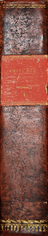 [Costumes [and annals] of the Great Theaters of Paris in colored figures.] 2 years in 3 volumes (25 x 18 cm), vol. 1 with 47 costume plates, of which 38 are hand-coloured, and 10 illustrations of engraved music. A general titthe le of third part present, as well as all tables of content, vol. 2 with 23 costume plates numbered 1-23 of which 20 hand-coloured and one other engraved plate, vol. 3 with 23 costume plates numbered 26-48, of which 21 hand-coloured, two illustrations with engraved music and tables of contents; very occasional spotting only, vol. 1 bound without general title and pl. 40, vol. 3 bound without issues 24 and 25 and their plates. Near contemporary half calf over marbled boards, flat spines with orange paper labels lettered in gilt, yellow edges; only slightly rubbed at extremities. Provenance: From the Fürstenberg Library at Donaueschingen. A very fresh example of these rare costume plates, coloured in beautiful soft washes. “Recueil interessant, recherche pour les renseignements que l’on y trouve sur le theatre, mais surtout pour ses jolis portraits d’actrices” (Cohen). The present volumes include all issues of the first year and most issues (46 of 48) of the second year, out of 3.5 years. Coloured plates in order: Volume 1. 1. Role de Mahomet. Aux Manes [Henri-Louis] de le Kain. 2. Role de Medee. Mademoiselle Raucourt. 3. Role de Crispin. Mr. [Pierre-Louis Dubus] Preville. 4. Role de Suzanne. Mademoiselle Contat. 5. Role du Vieil Horace. Jean-Baptiste Brisard. 6. Role de Tom Jones. M. Caillot. 7. Role de Nina. Mademoiselle Dugazon. 8. Role de Didon. Mademoiselle de Saint-Huberti. 9. Role du Misanthrope. Francois Rene Mole. 10. Mademoiselle [Marie-Magdeleine] Guimard dans le ballet du Navigateur. 11. Role de Blondel. Mr. Clairval. 12. Role de Rodrigue dans l'opera de Chimene. Etienne Lainez. 13. Role de Gabrielle de Vergy. Mademoiselle Vestris. 14. Role de Roxelane. Madame Favart. 15. M. Gardel le Jeune, de l'Academie Royale de Musique. 16. Role de Nicole du Bourgeois Gentil-homme. Madame Bellecourt. 17. Role de Renaud de l'opera D'armide. Mr. Rousseau de l'Academie Royale de Musique. 18. Role de Belinde dand la Colonie. Mademoiselle Colombe. 19. Role de Philoctete. Mr. de la Rive. 20. Role de Blaise, de l'Opera de Blaise et Babet. Mr. Michu. 21. Role de Madame Randan. Mademoiselle Contat. 22. Role de la Bride dans le Marechal ferand. Mr. La Ruette. 23. Role du Chevalier de Fourbignac dans les Curieux de Compiegne. Mr. Dugazon. 24. Role de Lisimon dans le Glorieux. Mr. Desessarts. 25. Role de Babet, dans Blaise et Babet. Madame Dugazon. 26. Madame St. Huberti de l'Academie Royalle de Musique. 27. Mademoiselle Colombe l'Ainee, dans la Colonie. 28. Role du Compere Boudard. Costume de Mr. Chenard. 29. Costume de Mr. Carlin dans Arlequin s'tatue, enfant. 30. David Garirk. 31. Costume de Mr. Bellecour dans le Marquis du Retour Imprevu. Que veut donc dire ce Tintamarre la &c. 32. La Clemence d'Auguste. (sepia) 33. Costume de Madame Gontier dans le Bon Menage... 34. Costume de Mademoiselle Dumenil dans le Role d'Athalie. 35. Costume de Mr. Philippe. Role d'Alcindor dans la Belle Arsene. 36. Costume de Mr. Sarazin. Role de Thesee, dans Phedre. 37. Costume de Madame St. Aubin, dans Lucette et Lucas. 38. Costume de Mr. Bonneval. Role de Geronte du legataire universel. 39. Costume de Mr. Rousseu. Role d'hyppolite dans Phedre. Volume 2. 40. Costume de Madame Vestris dans Polyeucte, Role de Pauline... 41. Costume de Mr. Granger. Role de Lys dans l'indigent. 42. Costume de Madame Dugazon. Role d'Azemia. 43. Costume de Mr. St. Fal. Role de Patrocle dans Briseis. 44. Mademoiselle Maillard, dans Tartare, Role d'Astasie. 45. Mr. Fleuri dans l'Ecole des Peres. Role de St. Fonds. 46. Mademoiselle Arnould. Role d'Iphigenie en Aulide dans l'opera de ce nom. 47. Mademoiselle Raucourt. Role de Leontine dans Heraclius. 48. Mademoiselle Olivier dans Amphitrion. Role d'Alomene. 49. Mademoiselle Saint-Val. Role d'Iphigenie en Tauride. 50. Costume de Mademoiselle Carline dans le Role de Zilia. 51. Costume de Mr. St. Prix, Role d'Oreste, dans Andromaque. 52. Costume de Mr. Naude. Role de Pharasmane dans Radamiste et Zenobie. 53. Costume de Mr. Vanhove. Role d'Auguste dans Cinna. 54. Costume de Mr. de la Rive dans le Role de Tancrede. 55. Costume de Mr. Lays, Role de Taddee dans l'opera de Theodore a Venise. 56. Costume de Mr. Mole, dans l'Amant Bouru. 57. Mademoiselle St. Huberti. Role de Penelope. 58. Costume de Mr. Dugazon, dans le Menteur. 59. Costume de Mademoiselle Fleury. Role d'Ophelie dans Hamlet. Volume 3. 60. Costume de Mr. Cheron. Role d'Oedipe a Colone. 61. Costume de Madamoiselle Contat. Role de Rosalie dans les Caprices. 62. Costume de Mr. de la Rive. Role de Pygmalion. 63. Costume de Mr. St. Fal. Role de Zeangir dans Mustapha. 64. Costume de Mr. Lainez. Role de Dardanus. 65. Portrait de Mademoiselle Clairon. 66. Costume de Mademoiselle Carline, Role de Julie dans les Etourdis, ou le Mort Suppose. 67. Costume de Mr. Cheron. Role d'Agamemnon dans Iphigenie en Aulide. 68. Costume de Mademoiselle St. Huberti. Role d'Iphigenie en Aulide. 69. Costume de Mademoiselle Saint-Val. Role de Zulma. 70. Costume de Mr. de Blainville ou l'optimiste dans la Comedie de ce nom. 71. Costume de Mademoiselle Contat. Role de Comtesse dans le Jaloux sans Amour. 72. Costume de Mademoiselle Maillard. Role d'Armide. 73. Costume D'Arnolphe dans l'Ecole des Femmes. 74. Costume de babet dans le Droit du Seigneur. 75. Costume de Mr. Trial. Role du Pere la Joie, dans les Vendangeurs. 76. Costume de la Rissole dans le Mercure Galant. 77. Costume de Mademoiselle Dumesnil. Role de Jocaste dans Oedipe, Tragedie de Voltaire. 78. Costume de Mr. Mole. Role de Nerestan dans Zaire. 79. Costume de Mr. Caillot. Role de Julien dand le Sorcier. 80. Costume d'Edouard dans le Siege de Calais.