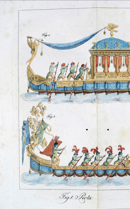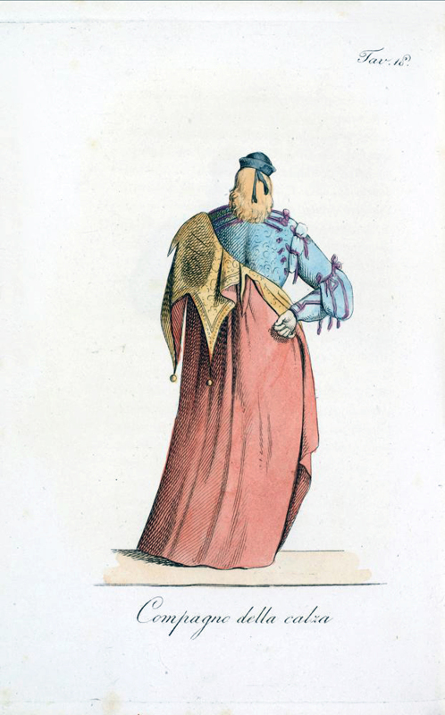 A study of Venetian costume up to the 18th century. The engraved plates show mostly costumed figures, a view of the Rialto bridge, three illustrations of gondolas, various art treasures, and public spectacles.