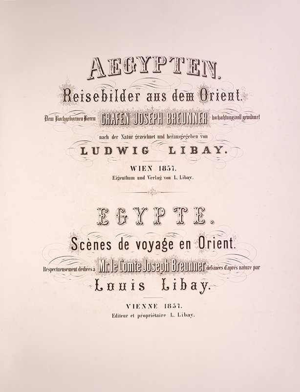 Karl Ludwig Libay was a Slovak lithographer, draftsman and painter. The text is by Orientalist Alfred von Kremer, and the work is dedicated to Count Joseph von Bruenner, Libay's travelling companion and son of his patron; Count August Ferdinand Bruenner, famous for building the Grafenneg Castle in Lower Austria. He had financed this expedition to Egypt. It was on this journey that Libay produced the illustrations for the work.