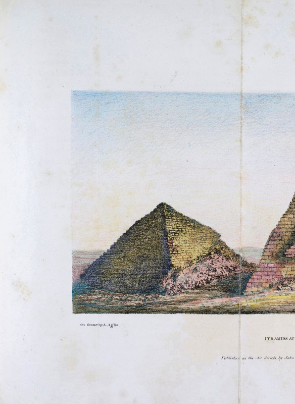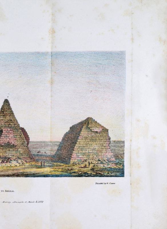 FIRST EDITION. Quarto. pp vi 333. 2 folding maps 16 plates. This is the exceedingly SCARCE hand-coloured issue with the frontispiece and seven other plates, one of which is folded in superb colour. Paper boards are a little bubbled. Sporadic spotting. Very good indeed with the colour plates in excellent state with only minor spotting at their edges - they comprise a native of Dóngola, a Nubian river-boat the pyramids at El Bellal (2 plates), the Castle of Koke a saint's tomb Djebel el Berkel and the Temple at Soleb. Modern leather-backed marbled paper boards; black leather labels on spine and lettered in gilt. Endpapers renewed. Waddington's work describes a journey from Wady Halfa to Merawe and back. The plates done on stone by Agostino Aglio are based on Waddington's original drawings, the one exception being the frontispiece which is by M. Linant, a French artist then living in Cairo who also improved" two or three other drawings. Waddington was also a church historian, his most important work in that area being A History of the Church from the Earliest Ages to the Reformation (1835). Coloured plates in order: 1. Frontispiece. A Native of Dongola. 2. Nubian Ferry-Boat. 3. Djebel el Berkel. 4. Pyramids at El Bellal. (folding plate) 5. Great Pyramid at El Bellal. 6. A Saint's Tomb. 7. Castle of Koke. 8. Temple of Soleb.