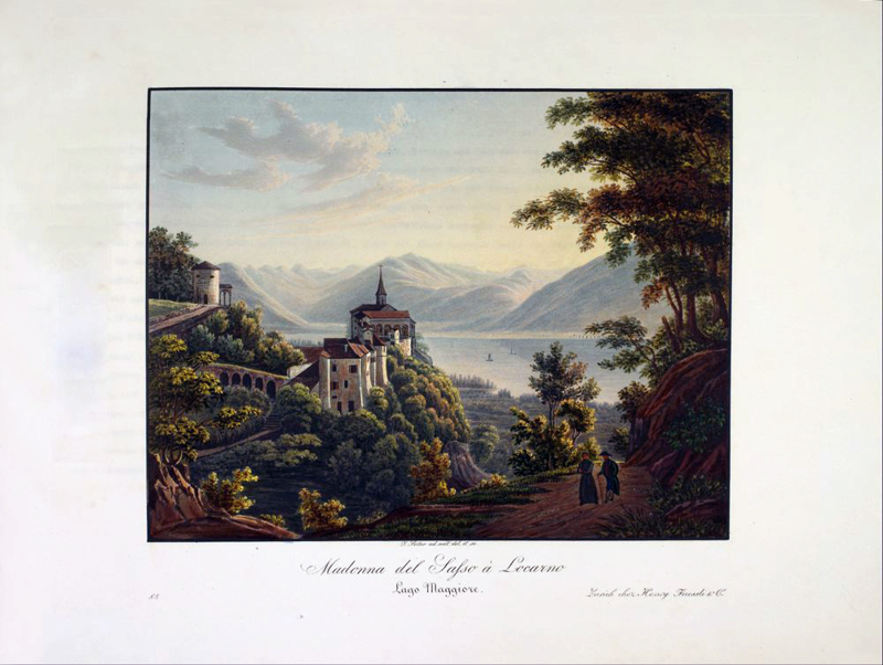 4to. 238 x 305 mm. (9 3/8" x 12"). 2 p.l., 72 pp. Original green paper wrappers. In a very good recent buckram folding case with title in gilt on a black morocco label on upper board.15 superb, hand coloured aquatint Swiss views by Josef Meinrad Kälin and Jakob Suter. Paper wrapper chipped at head and tail of spine, intermittent faint freckled foxing to text, otherwise a fine copy of a fragile item, with clean, fresh text and bright, richly coloured plates. With the original tissue guards. An excessively RARE coloured copy of a work almost never found in any form. Beautifully illustrated account of the newly completed road through the St. Gotthard Pass (or, in Italian, Passo del San Gottardo), featuring Kälin's handsome views of the canton of Ticino. The book begins with 35 pages of text dealing with Ticino's climate, vegetation, minerals, population, history, and constitution, the southernmost canton in Switzerland and the only one where Italian is the sole official language. Following this are the 15 exquisite views, each accompanied by explanatory text, that show us the beginning and ending of the newly constructed route, as well as the scenic high points along the way. The book was first issued in 1830 with 12 views, then a second was issued containing three views in 1833, when the entire set was republished in the present form. Our visual journey begins at the peaceful lakeside Hospice of St. Gotthard (now a museum), and continues through the most famous mountain pass in Switzerland towards Lugano. The scenes depict tranquil views of the countryside, often including small villages - all emphasizing the pastoral beauty and quaint towns rather than the heart-stopping drops into the Schöllenen Gorge. (Perhaps the publisher hoped to attract more visitors to the region and thus chose to downplay the dizzying heights in favour of lovely tourist-friendly towns and lakes.) There are two views of bridges over the turbulent river Reuss, both appearing quite solid and trustworthy, and one being crossed by a carriage, something that was not possible until improvements were made to the road in 1775. The colouring is careful, unusually--almost intensely--opaque, and especially pleasing. Our Swiss artist Meinrad Kälin (1790-1834) started his career painting miniature portraits, later graduating to landscapes. This work was the crowning achievement of his career. Jakob Suter (1805-74) studied with landscape painter J. J. Wetzel and specialized in engravings and watercolous of landscapes in his native land. Author Karl Franz Lusser (1790-1859) was a doctor and magistrate in Altdorf whose avocation was the study of the natural history of the region. Coloured plates in order: 1. Hospice du St. Gotthard. 2. Pont Tremola. Route du St. Gotthard. 3. Route de Val Tremola vers Airolo, Stalvedro, Piotta & Ambri. Route du St. Gotthard. 4. Airolo. Route du St. Gotthard. 5. Passage de Stalvedro. Route du St. Gotthard. 6. Dazio grande. Route du St. Gotthard. 7. Defile de Dazio grande. Route du St. Gotthard. 8. Pont inferieur de Dazio grande. Route du St. Gotthard. 9. Faido. Route du St. Gotthard. 10. Giornico, Val Leventina. Canton Tocino. 11. Bodio. Valee Levantine, roite du St. Gotthard. 12. Cresciano et Claro. Val Leventina, route du St. Gotthard. 13. Bellinzona. 14. Lugano. Vers le mont Salvador. 15. Madonna del Sasso a Locarno. Lago Maggiore.