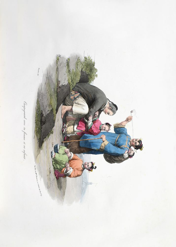 [China, Customs, Uses, Arts and Crafts, Civil and Military Punishments, Religious Ceremonies, Monuments and Landscapes.] A FIRST EDITION. 2 volumes folio engraved title 144 (plus another 39 plates from a Bobins copy, marked thus **) hand-coloured vignette lithographic plates, three engraved plates of music, light damp staining and spotting together with discolouration to a few plates - but generally plates very clean. Later red half morocco with green boards, title in gilt to (smooth) spine. Floral endpapers and bookplate to front pastedown. Coloured plates [not] in order: Volume 1. 1. Title page. 2. Dame d'un rang eleve. 3. Porte-enseigne du corps des archers. 4. Page de Mandarin. 5. Gondole de Mandarin. 6. Interieur d'une Maison chinoise. 7. Mandarin en habit de Cour. 8. Brouette a voile. 9. Groupe de soldats de différents corps. 10. Courrier Tartare. 11. Vue du grand Canal. 12. Marchand de Poissons. 13. Brodeuse. 14. Libraire. 15. Peche aux Cormorans. 16. Les Marionnettes. 17. Jardinier fleuriste. 18. Jeune mere avec son enfant. 19. Forgeron ambulant. 20. Jeune Bonze sacrifiant. 21. Un Bonze. 22. Prevenu devant un Magistrat. 23. Petite Pagode rustique. 24. Bateliere. 25. Marchands de Pipes. 26. Faiseurs de tours, Equilibristes. 27. Famille de Pecheurs. 28. Groupe de Chinois riverains. 29. Malfaiteur enchaine a une tige de fer. 30. Jeune Fille roulant des feuilles de the. 31. Musicien ambulant. 32. Fantassin avec son arquebuse a mèche. 33. Pompe funebre. 34. Pompe funebre.chaise a porteurs. 35. Peine de la Cangue. 36. Femme de Mandarin. 37. Criminel dans une cage. 38. Marchand calculant sur son Swan-pan. 39. Porte-Insigne imperial. 40. Psylles Chinois. 41. Chambre de Compagnie chez les Gens aises. 42. Dame tartare de haut parage. 43. Bonnetier. 44. Forgeron travaillant. 45. Un Lama. 46. Peine du Pan-tsee ou Bastonnade. 47. Chateau-fort pres Tien-Sing. 48. Chaudronnier. 49. Changeur. 50. Marchand de Betel. 51. Salle de Ceremonie chez les Princes titres. 52. Un Boschee. 53. Marchand de Flutes. 54. Station au tombeau de la famille. 55. Voiture chinoise. 56. Paysans et Mariniers jouant aux des. 57. Maison de Lettre. 58. Archer tartare en simple uniforme. 59. Taa, pres de la ville de Sou-tcheou. 60. Domestique, Valet de Chambre. 61. Fantassin, nomme Tigre de Guerre. 62. Nautonnier dans sa barque. 63. Fabricante de Bas. 64. Chatiments infliges a ceux qui manquent a leurs supérieurs. 65. Batiment en pierre, ayant la forme d'un vaisseau. 66. Maniere de consulter le sort. 67. Vaisseau passant une ecluse. 68. Marchande de Chow-Chow. 69. Nourrice avec son enfant. 70. Maniere de mettre les doigts a la torture. 71. Barbier ambulant. 72. Colporteur. 73. Marchand de Viperes. 74. Barbiers, empileurs, travaillant. 75. Tonques ou Navires de Commerce. 76. Campagnard avec sa femme et ses enfants. 77. Constructions temporaires pour des Receptions et des Fetes. 78. L'Empereur Kien-Long.** 79. Pagode, Temple chinois.** 80. Mandain en costume ordinaire.** 81. Marchand de lanternes.** 82. La piece curieuse.** 83. Villageoises preparant le coton file.** 84. Faubourg de Yang-Fou.** 85. Chaise a porteurs.** 86. Comedien dans un role de femme. ** Volume 2. 87. Title page. 88. Pai-Lou. (Porte triomphale). Construit en bois. 89. Jeunes Paysans ramassant du fumier. 90. Fourreur. 91. Charpentier. 92. Porteur de Palanquin. 93. Joueurs Chinois faisant combattre des cailles. 94. Voyageur a pied. 95. Mime executant une action scénique. 96. Chaise a porteur ordinaire. 97. Constructeur en briques. 98. Bateau pour la peche au filet. 99. Interrogatoire en plein vent. 100. Malfaiteur conduit au lieu de son exil. 101. Batiment de transport. 102. Femme de haut rang, avec son enfant et sa suivante. 103. Jeu de volant avec les pieds. 104. Title page of L'Union des Sarcelles (followed by 2 pages of sheet music.) 105. L'hommage des Sarcelles. 106. Residence de Mandarin. 107. Taa et Pont de forme moderne. 108. Yacht de Mandarin a la voile. 109. Cordonnier. 110. Distillateur. 111. General de Cavalerie. 112. Porte des Jardins d'un Palais. 113. Pecheur. 114. Fabricant de Fleches. 115. Musicienne jouant du Che. 116. Maniere de bruler les yeux avec la chaux-vive. 117. Baigneuses a leur toilette. 118. Tailleur de pierre. 119. King moderne, Tchang-Kou et Ou. 120. Mandarin attendant des visites. 121. Sorte d'Estrapade chinoise. 122. Mendiant avec un Chien exerce. 123. Criminel portant la Cangue, en route. 124. Champ de repos, de la ville de Hang-tcheou-fou. 125. Maniere d'éplucher le Coton. 126. Mendiant devant une Pagode. 127. Carillonneur s'exerçant sur le Pien Tchoung. 128. Jongue passant sur un plan incline. 129. Haleurs prenant leur repas. (stained) 130. Soldat d'infanterie. (stained) 131. Vaisseaux a l'ancre. (stained) 132. Pavillon et Taa modernes. (stained) 133. Pharmacien ambulant (stained). 134. Malfaiteur conduit pour être exécute. 135. Maison de Plaisance d'un Grand, Cote des Jardins. 136. Maison de plaisance d'un Mandarin de première classe. 137. Comedien, grand Role tragique. (stained) 138. Vanier. 139. Meunier. (stained) 140. Marchand de bois a bruler. 141. Enfans faisant leur repas. 142. Pavillon et Pont de Parade. 143. Tortillement des Oreilles. (stained) 144. Voyageur allant en pelerinage au tombeau de ses ancetres (stained.) 145. Fabricant de boites a the. 146. Charcutier ambulant. 147. Question extraordinaire. 148. Pont pittoresque aux environs de la ville de Sou-tcheou. 149. Groupe de Colporteurs. 150. Marchand de Comestibles avec sa voilure a voile. 151. Chambre a coucher d'une famille Tartare-Mandchoue. 152. Garde Imperiale. Cavalier et Fantassin. 153. Raccommodeur de Porcelaine. 154. Medecin allant en visite. ** 155. Chatiment inflige aux faux Interpretes et supplice du Tube de Bambou. ** 156. La Lanterne magique.** 157. Vaisseau de Guerre. ** 158. Station militaire. ** 159. Salle des visites.** 160. Peintre de lanternes. ** 161. Marchand de Riz et Archer Tartare a cheval. ** 162. Eclipse de Soleil.** 163. Re
