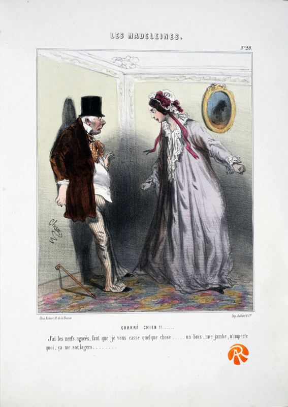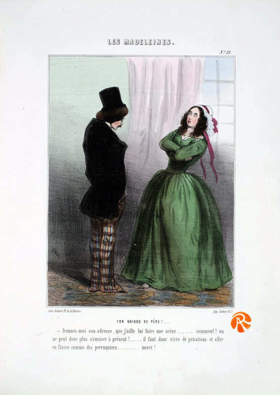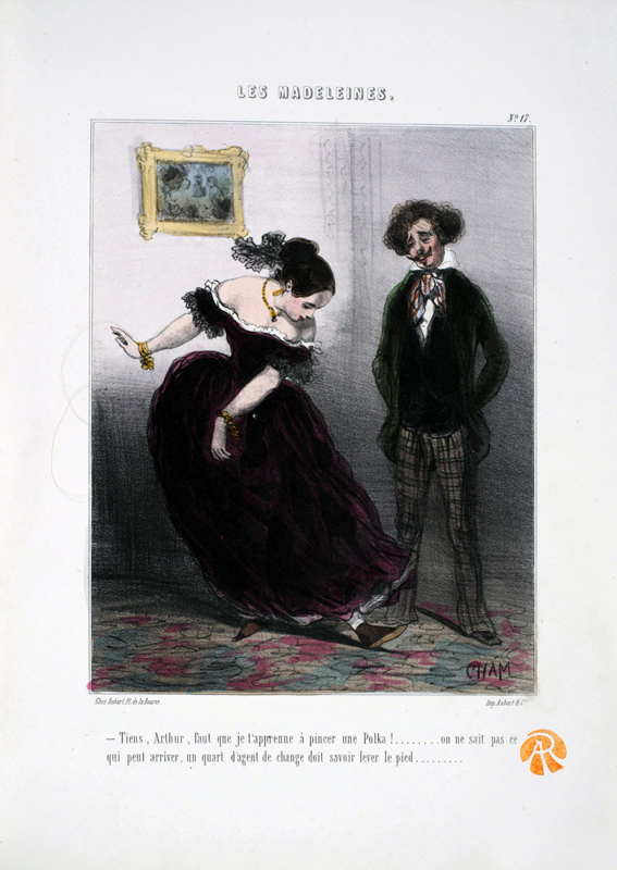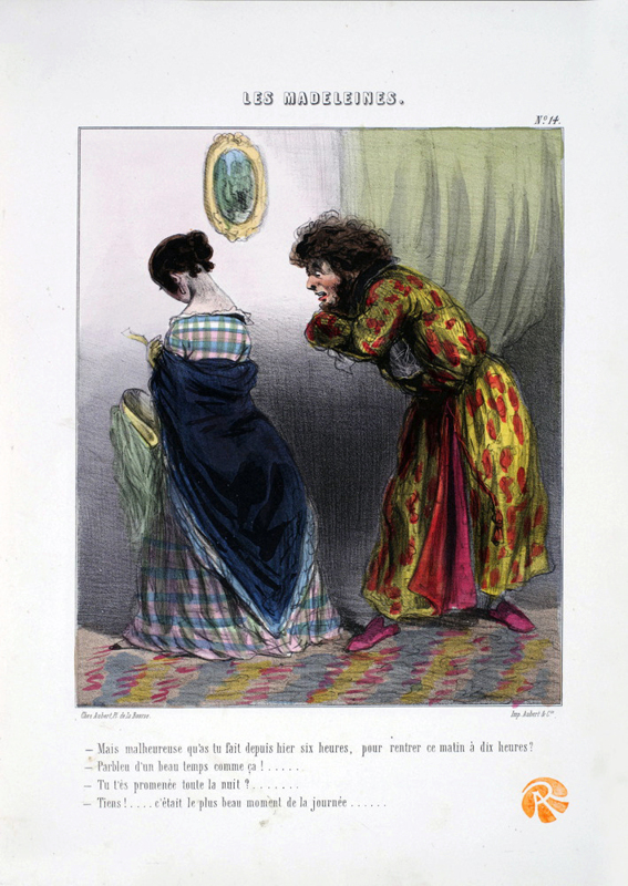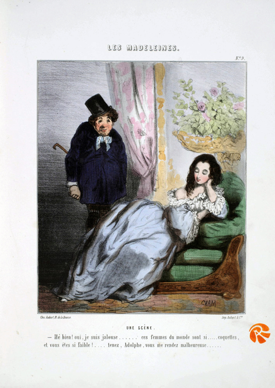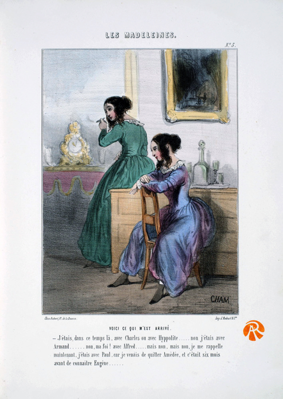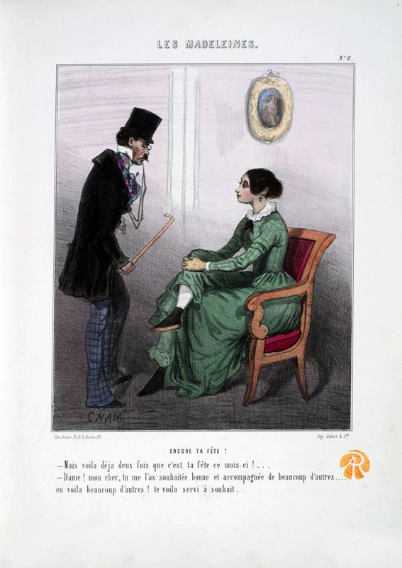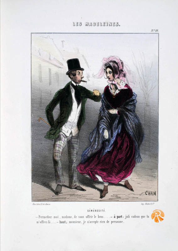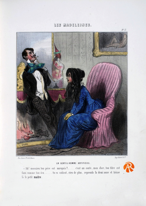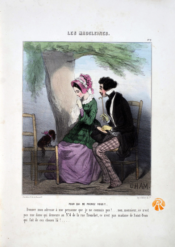 Handsome hand-coloured lithographs by Cham depict humorous Parisian life, particularly repentant ladies of easy virtue (prostitutes).
