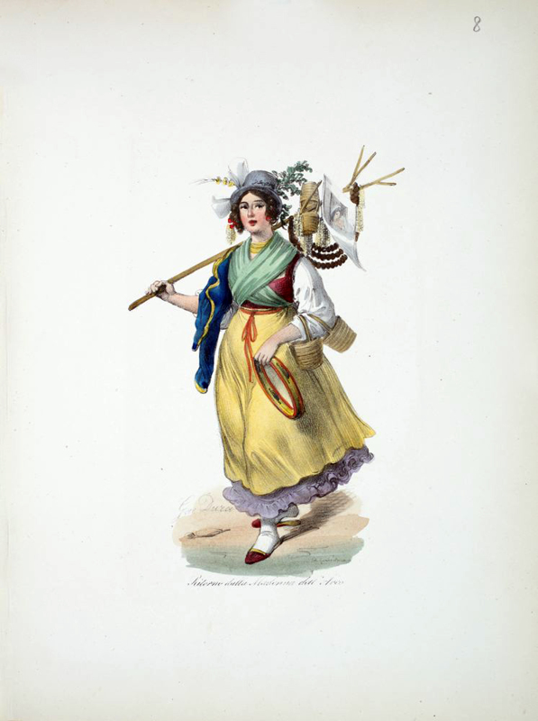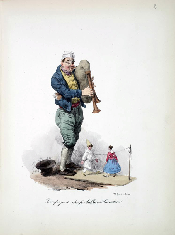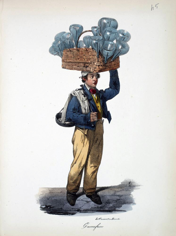 An amusing series of plates illustrating typical Italian artisans familiar to the commedia dell'arte: including a Pizzajuolo, a Sorbettaro, sweet and fruit sellers, musicians, and other entertainers.