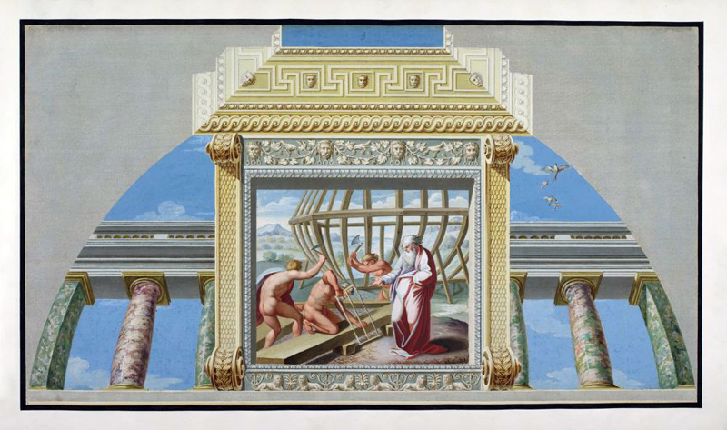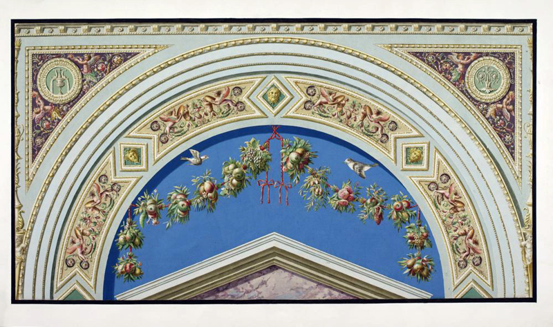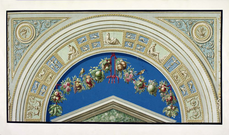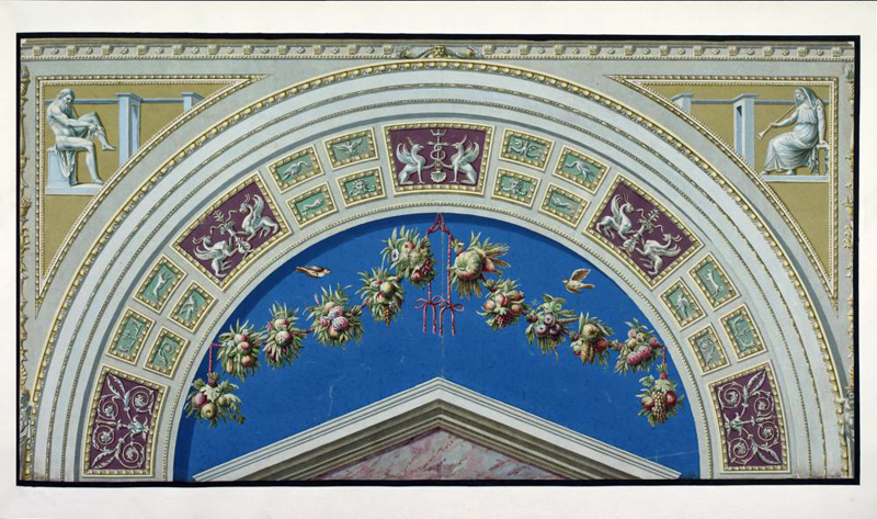 These engravings by Ottaviani after drawings by Gaetano Savorelli and Pietro Camporesi were issued in 1776 and have a very fine colouring. Giovanni Ottaviani was a professional copperplate engraver from Rome. The Raphael decorations in the Vatican's three-storied balconies known as the 'Logge' quickly became famous, and various suites of plates were issued in the 17th century.