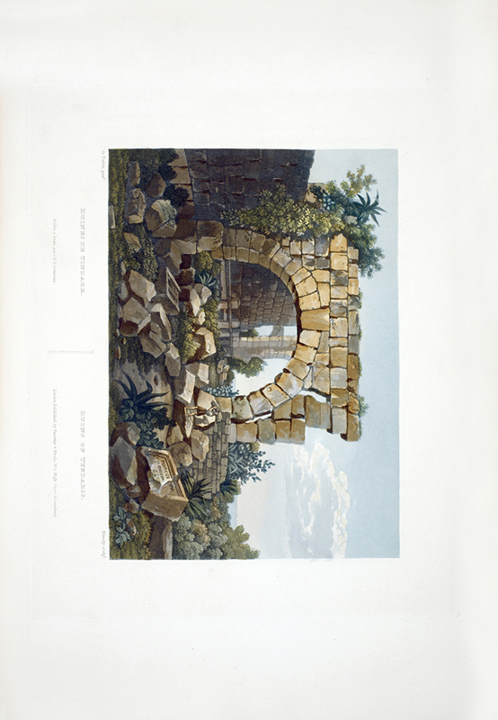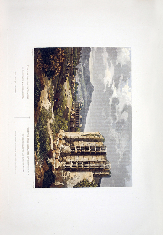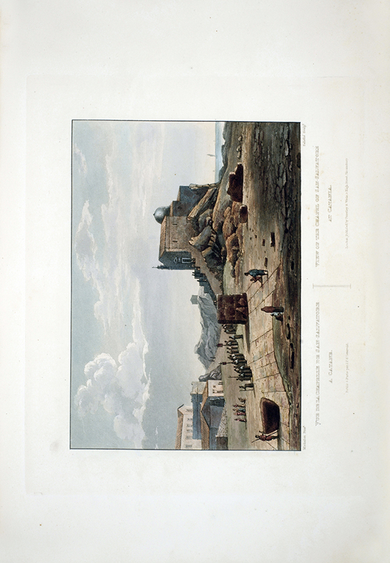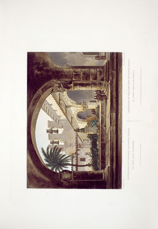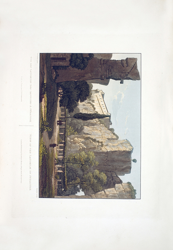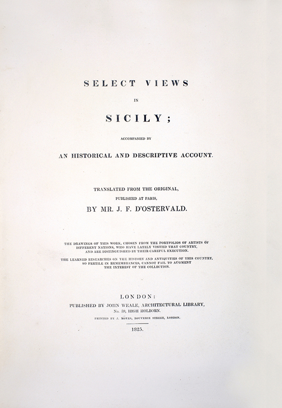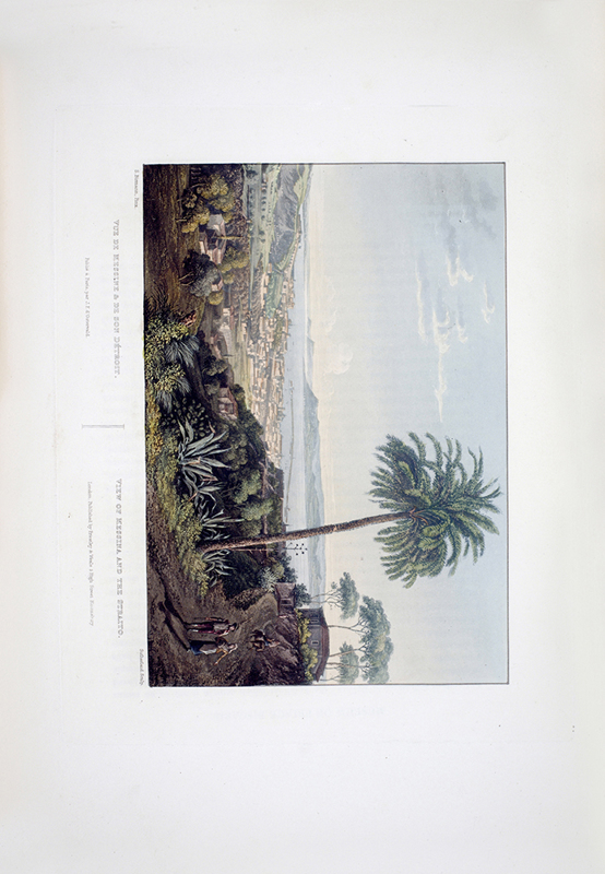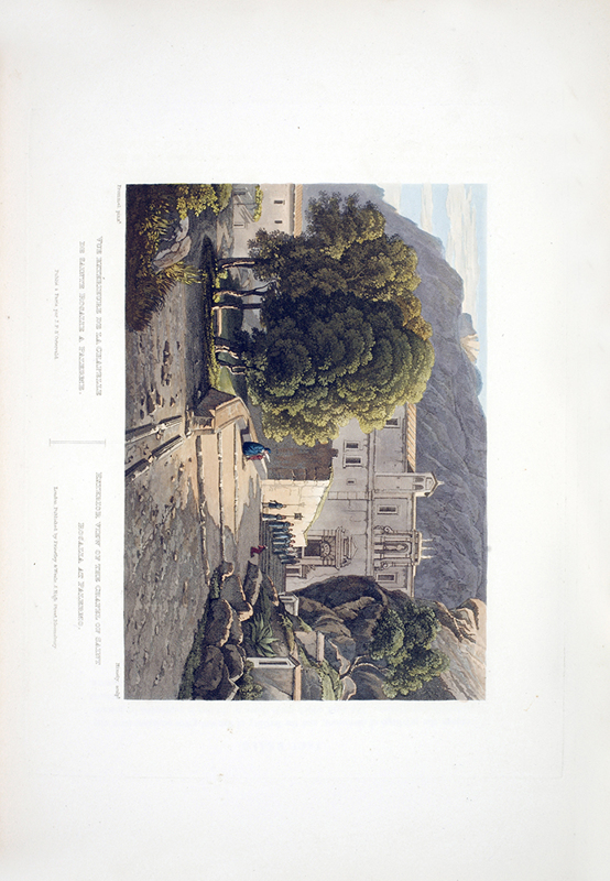 4to, title, 36 hand-coloured aquatint plates, titled in French and English, many engravers, in contemporary 1/4 burgundy calf, marbled sides, brown linen cloth-covered boards, lettered in gilt to spine. Bookplate of 'Norman R. Bobins' to front pastedown. AN UNCOMMON WORK. This is an English version of the 'Voyage Pittoresque en Sicilie (1822-26). (See Bobins # 5527). Coloured plates in order: 1. The Cyclops Rocks. 2. Temple of Juno Lucina of Agrigentum. 3. View of Sala di Partenico. 4. Ruins of Tyndaris. 5. View of the Port of Tusa. 6. View of the Interior of the Crater of Etna. 7. View of Termini. 8. View of the Port of Catania. 9. View of the Bay of Termini. 10. Remains of a Temple at Salinus. 11. View of Taormina taken from the Village of Giardini. 12. Entrance of the Museum of Prince Biscaris at Catania. 13. View of Messina and the Straito. 14. View of Cape Alessio. 15. View of Jaci and the Straits of Messina. 16. Exterior view of the Chapel of St. Rosalia at Palermo. 17. Etna seen from the House of Gemellaro. 18. View of the Remains of the Temple of Aesculapius at Agrigentum. 19. View of the Latomiae of Syracuse. 20. View of part of the site of Ancient Agrigentum. 21. View of Messina taken from the Height of the Telegraph. 22. View of the Temple of Juno-Lucina, and the Ruins of the Ancient Walls of Agrigentum. 23. Aqueductat La Bagaria, near Palermo. 24. View of the Convent of the Capuchins at Taormina. 25. Staircase of the Theatre of Catania. 26. View of Etna and the Gulf of Milazzo. 27. View of Monte-Rosso from San-Nicolosi. 28. Distant View of the Temple of Segesta. 29. Cathedral of Palermo. 30. View of Syracuse taken from the Theatre. 31. View of the Chapel of San-Salvatore at Catania. 32. Interior of the Convent of Santa Maria di Gesu, near Palermo. 33. Crater of Etna. 34. The Fountain Cyane at Syracuse. 35. View of the Harbour of Girgenth. 36. Convent of Benedictin Nuns at Sciatica.