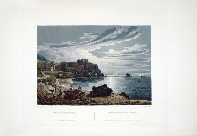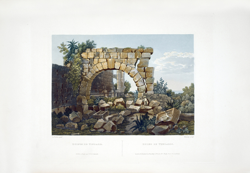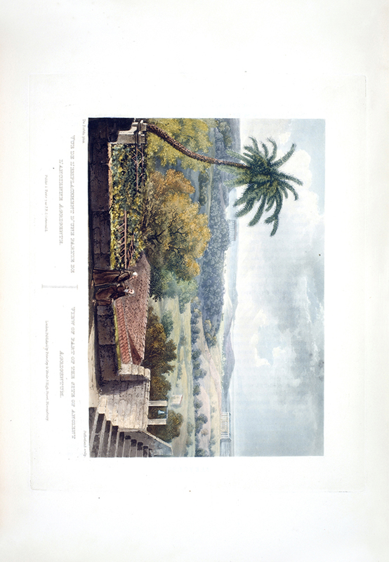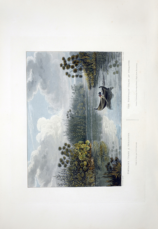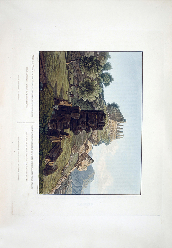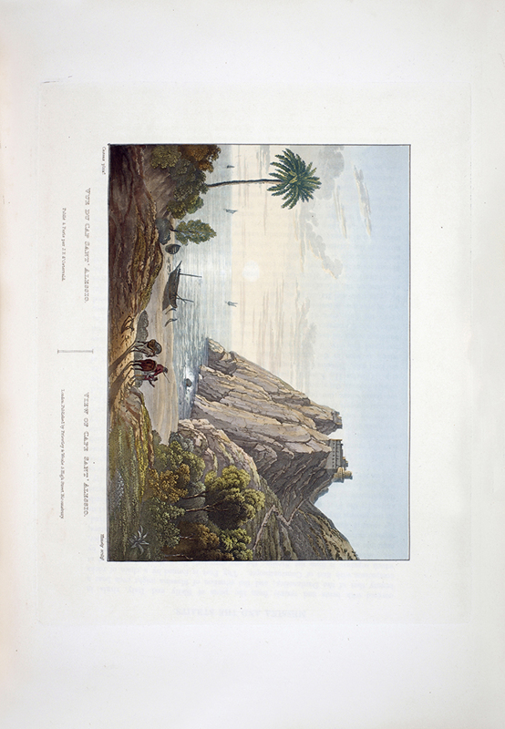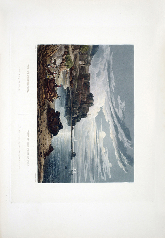 The engravings, accompanied by letter press explanations, are of great interest and considerable beauty; they give the impression of being "snapshots" of a moment in time, rather than static landscape views. We catch a glimpse of finely dressed gentlemen "no doubt on a Grand Tour" exploring a ruin, shepherds tending their flocks, fishermen hauling in a catch, and young women sitting on a stone wall, chatting in a quiet moment. The colours are realistically rendered, neither subdued nor garish, and have weathered the years well. The plates are memorable for their use of light and shadow to give a convincing feeling of three-dimensionality amidst luminous skies, darkened interiors, and a number of other variably lit settings.
