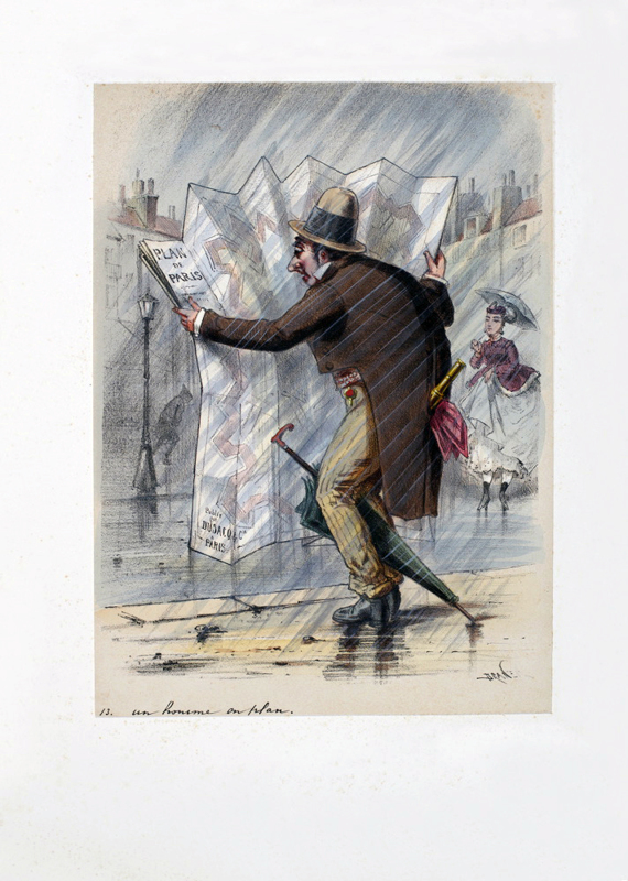 The original gilt-decorated red portfolio covers with green silk ties. Red cloth spine. A lithograph title page and 18 hand-coloured lithographic plates mounted on card. Clever caricatures of visitors to the Paris Expo of 1867- French types and various nationalities. Some foxing to (loose) plates. Coloured plates in order: 1. Voyage, sans fatigue, a travers l'Exposition. 2. Souvenirs de l'Exposition - on livre a domicile. 3. Ca qui donne une haute idee de l'Angleterre. 4. Le Nectar des souverains - prix fixe on traite de gre a gre pour les fortes parties. 5. Etre le premier de Bruxelles pour lapeau d'ane le dors de veau, savez vous, & avoir... 6. La Svisse,.....ce moi ! 7. Deux homes libren.....l'un de faire, l'autre de boise le Sherry Cobblers. 8. Le Jeune Allemagne. 9. Moa bocoup aimer tojours le fleur du petite francaise. 10. Ca ! tes pottes !! Ah ! Jesus Mein Gott ! 11. Melange de fleurs de Nice pour parfumer le appartement....de garcon et preserver des mites ! 12. L'Americain est pret ici bas a tout faire otez le tallier, vour aurez un notaire. 13. Un home on plan. 14. Le Tribunal.......ordonne que toutes les chaises du pourtour serout immediament enlevier.... 15. Garcon, voyez donc !!....oh ! s'est bien sur un des cheveux monsieur. 16. Ile pas savoir trouver de lodgements ! faut il etre....etranger ! 17. Des chiens ! l'pus souvent ! C'est y pas assez des voyageurs pour salir nos voiturer ! 18. Ho ! shocking ! Oh ! Beautiful !!