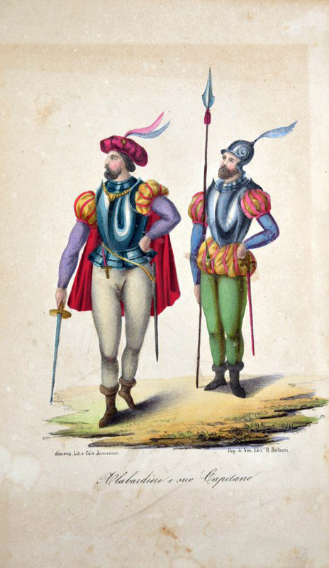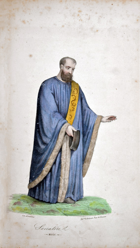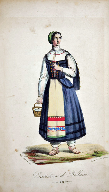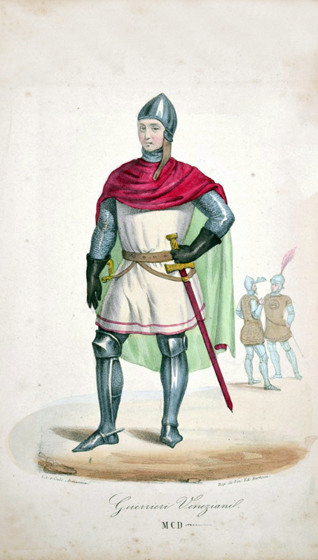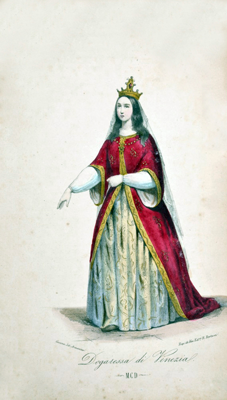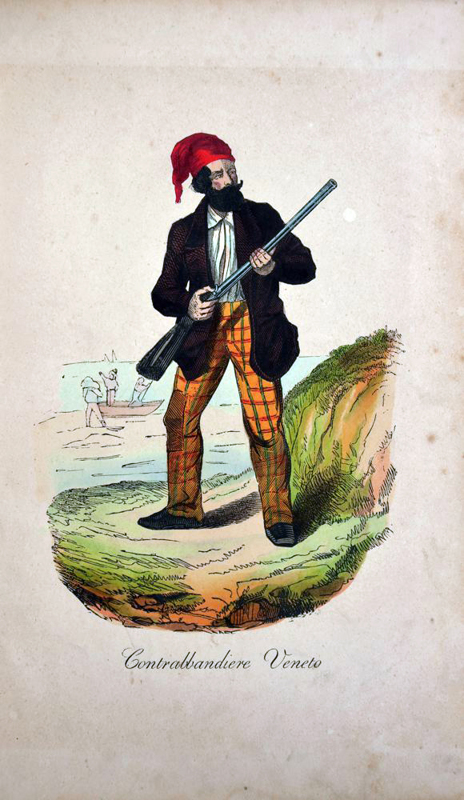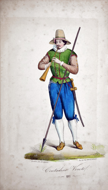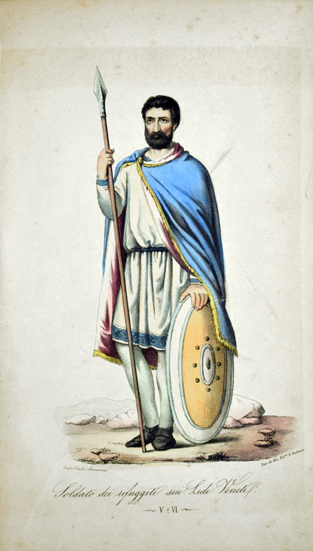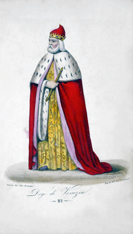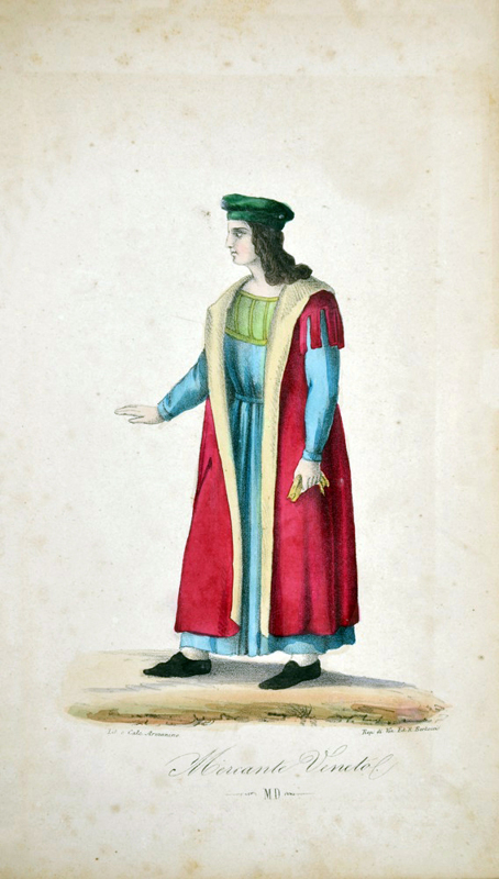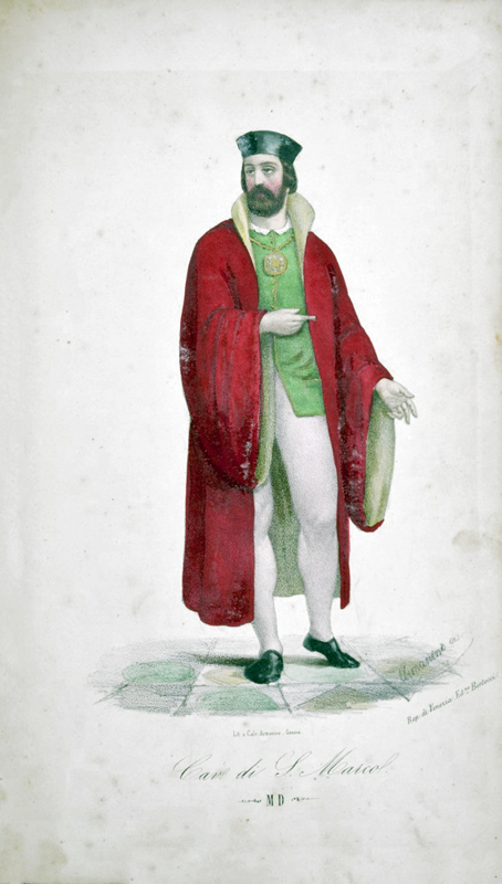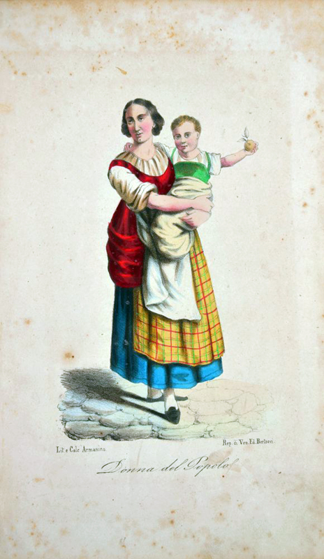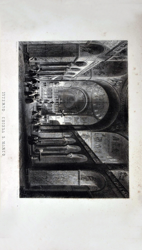 2 vols. in 4to; frontespizio figurato a colori, 501 pp., 3 cc., 16 tavv. litografiche di costumi a colori e 4 in acciaio di vedute; frontespizio figurato a colori, 359 pp., 9 tavv. litografiche di costumi, 3 in acciaio con edifici e una grande veduta di Venezia a volo d'uccello; legatura del tempo in mezza pelle.Titoli e fregi in oro al dorso (minimi difetti alle cuffie). Seconda tiratura, tipograficamente assai migliorata, della prima traduzione. History of the Republic of Venice. Quarter leather over red speckled paper boards; flat bands in gilt to spine; title in gilt to spine; coloured edges; spine pulled; hinges rubbed and worn; corners have been repaired; bookplate to front pastedown reads: "Ex Libris Dio Mi Concesse Questi Ozi." 2 x coloured title pages, 2nd edition, 27 col costume plates and eight uncoloured steel engraved plates....including a lovely double-page view of Venice together with some wood-engraved illustrations in the text. Coloured plates in order: Volume 1. 1. Title page. 2. Nobile Veneziana. 3. Ambasciatore del Doge. 4. Giovani e Scolare Veneziano. 5. Gentil Donna Veneziana. 6. Mercante Veneto. 7. Nobile Venuto. 8. Dogaressa di Venezia. 9. Guerrieri Veneziani. 10. Artigiano e Pecatori Veneziani. 11. Soldato dei rifuggiti sui Lidi Veniti. 12. Contadina di Belluno. 13. Senatore. 14. Contadino Veneto. 15. Cav di San Marco. 16. Generale Veneziano. 17. Doge di Venezia. Volume 2. 18. Title page. 19. Donna del Popolo. 20. Procuratore di San marco. 21. Alabardiere e suo Capitano. 22. Contrabbandiere Veneto. 23. Pittore Veneto. 24. Gentildonna di Brescia. 25. Rettore dello Studio di Padua. 26. Soldato della Marina Veneta. 27. Cancelliere Grande.