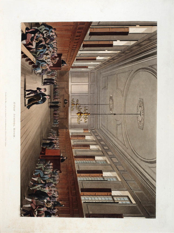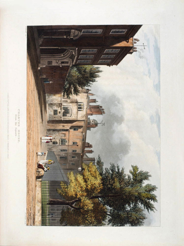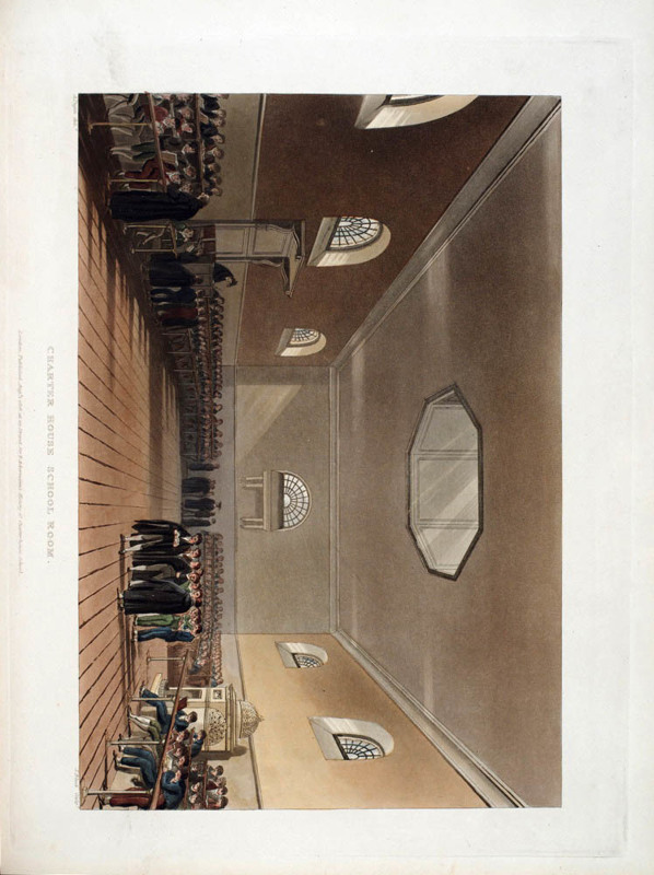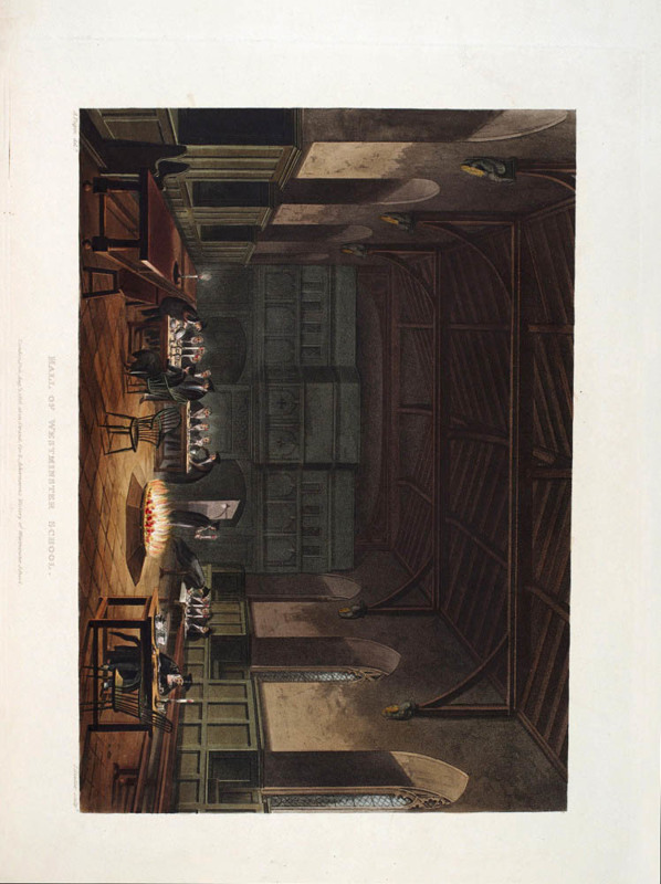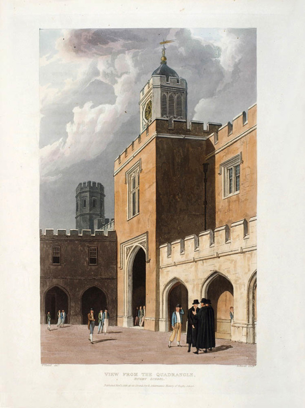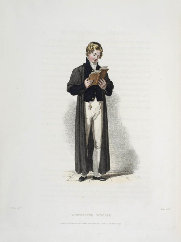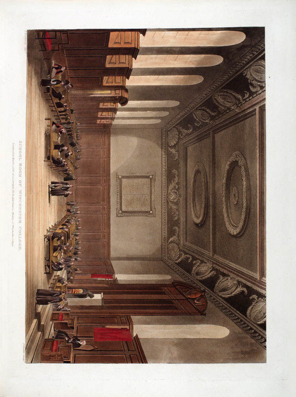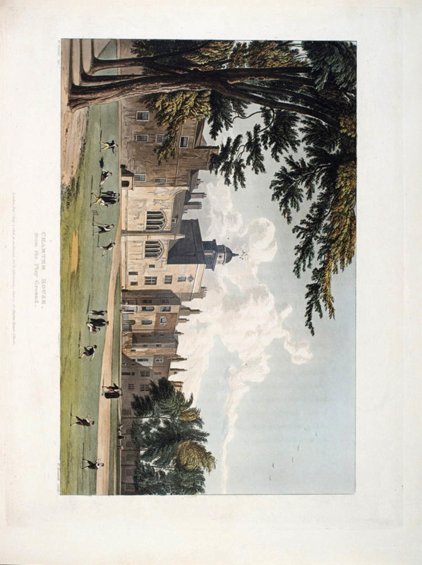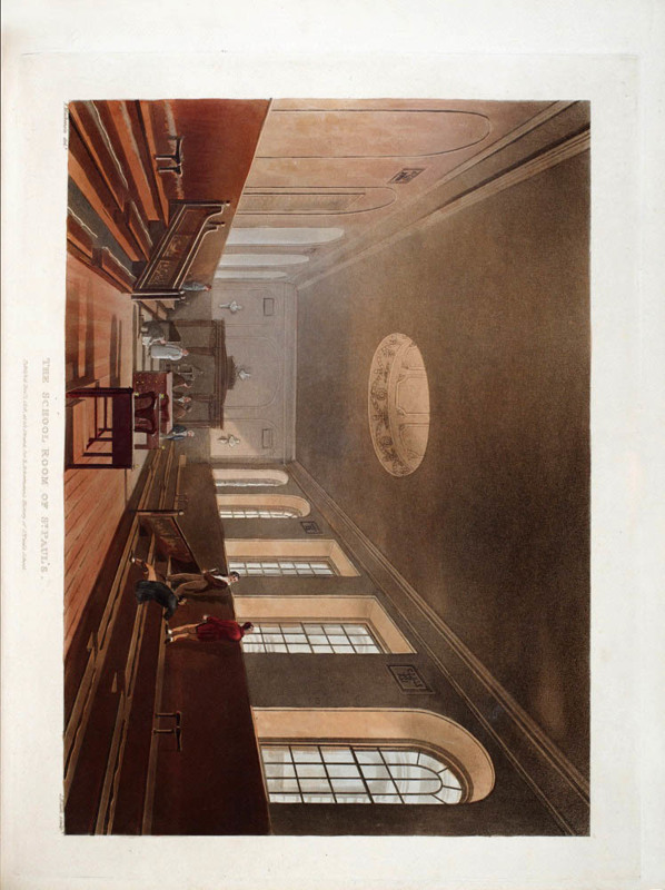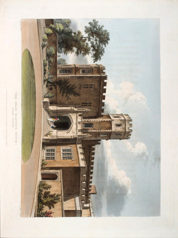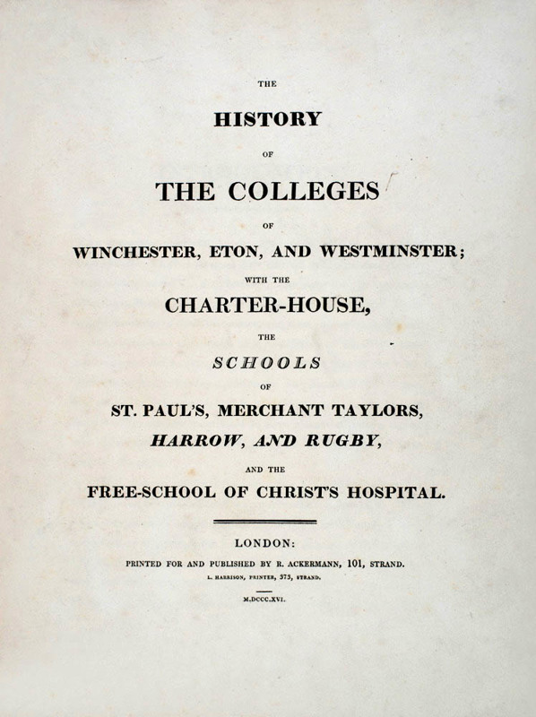 FIRST EDITION. Large 4to vi [1 blank] pp. With 48 hand-coloured plates (45 aquatints and three engraved), including four costume plates and the others. Front cover decoratively tooled in gilt, the spine tooled and lettered in gilt in compartments with five raised bands gilt edges and turn-ins top edge gilt—"Cockerell" marbled endpapers. Bookplate removed from front pastedown. Occasional very light offsetting from the plates to the text. Bound by Sangorski & Sutcliffe c. 1950. An excellent example of this work. 4 costume plates and 44 views by Havell, Stadler, Bluck, and others, after Westall, MacKenzie, Pugin, and others. Inscription to prelim reads: "Presented to St. Pauls Schools by K.B. Schley, 1929". *Ron Norman of Hartlepool carried out rebinding and restoration work on this book. (Ronnorm@aol.com)* Coloured plates in order: Winchester College. 1. Frontis. Winchester College Entrance, with the Warden's House. 2. Nave of Winchester Cathedral, with William of Wykeham's Tomb. 3. Winchester College, from the Warden's Garden. 4. Winchester College Chapel, from the Great Court. 5. Cloisters of Winchester College. 6. Winchester College, from the Meadow. 7. Winchester College Chapel. 8. Library of Winchester College. 9. School Room of Winchester College. 10. Winchester Scholar. Eton College. 11. Eton College from the River. 12. Eton College. Great Court. 13. Cloisters of Eton College. 14. Eton College Chapel. 15. Ante-Chapel of Eton College. 16. Eton College Chapel. 17. Eton School Room. 18. Hall of Eton College. 19. Eton College Library. 20. Eton Scholar. Westminster School. 21. Westminster Scholar. 22. Hall of Westminster School. 23. Westminster School Room. 24. Dormitory of Westminster School. Charterhouse School. 25. Charter House from the Square. 26. Charter House from the PlayGround. 27. Hall of Charter House. 28. Dr. Fisher's Apartments, Charter House. 29. Charter House School Room. St. Paul's School. 30. St. Paul's School. 31. The School Room of St. Paul's. Merchant Taylors' School. 32. The Merchant Taylors' School Room. 33. Examination Room of Merchant Taylors' School. Free-School of Harrow. 34. Harrow Church & School from near the Cricket Grounds. 35. Interior of Harrow Church. 36. Harrow School Room. 37. Harrow School. 38. First Master's House, Harrow School. Rugby School. 39. View of Rugby School from the Northampton Road. 40. View of the Southern Schools & Dormitories of Rugby School - from the PlayGround. 41. The Head master's House. Rugby School. 42. Great School Room of Rugby. 43. View from the Quadrangle. Rugby School. Christ's Hospital. 44. Hall of Christ Hospital. 45. Writing School, Christ Hospital. 46. Grammar School of Christ Hospital. 47. Interior of Christ Church. 48. A Scholar of Christ Hospital.
