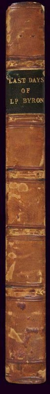 3 plates plus frontispiece. Half calf over marbled boards, marbled edges, spine with raised bands and in six compartments, black leather label and gilt letters to the second compartment. Spine rubbed and worn, with fresh cloth hinges and reinforced corners, but in good condition. Rebinding and restoration work on this book was carried out by Ron Norman of Hartlepool (Ronnorn@aol.com) Coloured plates in order: 1. Lord Byron's House, Missolonghi. 2. Lord Byron attended by his Suliote guards. 3. Lord Byron on his Death Bed.