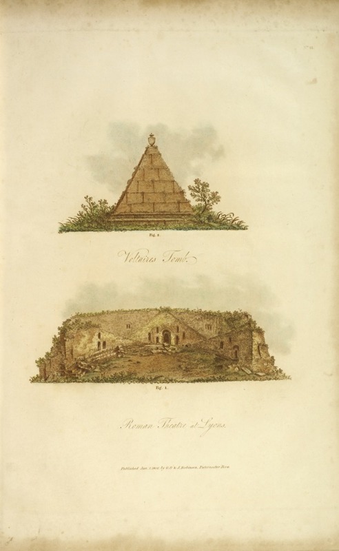 Superb views of cities and alpine landscapes (Lyon, Geneva, Cluse, Lusanne, Vevey, Sion, St. Gotthard, Martigny, St. Bernard, etc.). First edition of this detailed travel report on the Lepontine Alps, artistically illustrated. The author, an excellent artist of Savoyard origins (Chambery 1753-1811), was an officer of Carlo Emanuele IV and published in addition to this, three other similar works, on the Cottian, Graian, and Maritime Alps.