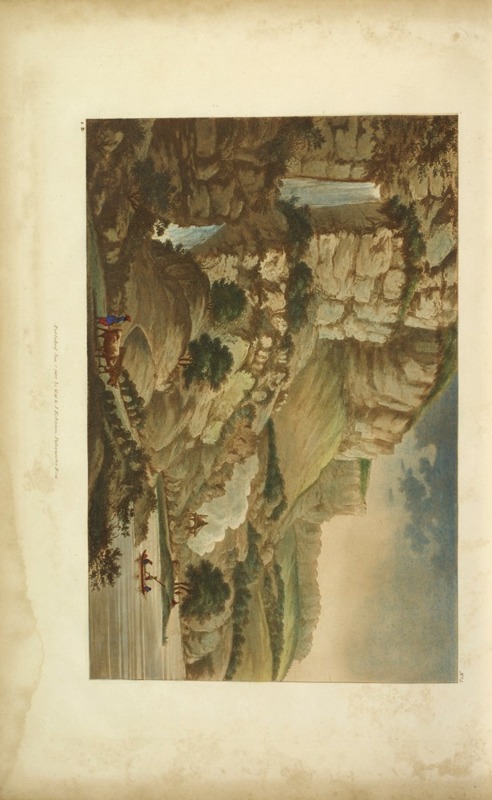 A collection of beautiful views of the Alps. Large folio. Contemporary half brown morocco, spine ribbed. Engraved title with a hand-coloured illustration of a house in the Alps, separate printed title, double-page folding engraved map coloured in outlines, engraved plan of Lyon, and 25 fine hand-coloured engraved views of the Lepontine Alps, all by A. Beaumont. (6), 218 pp. FIRST EDITION of a beautifully illustrated travel book on the Lepontine Alps. The plates in the present publication are numbered 1 to 27. (2 plates being maps of 'the route from Lyon to Turin' and the other being a town plan of Lyon). The text contains many interesting topographical and historical information on this part of the Alps. A good copy of a rare coloured plate book, with the bookplate of Alfred C. Buckley, of Bury in Lancashire to the front pastedown. Binding rubbed and worm - some plates slightly stained and browned at outer margins. This state carries no titles except No.4. Coloured plates on order: [Title page]. 1. Lyons. 2. Aqueduct built by the Romans 3. [2 images on page] Voltaire's Tomb / Roman Theatre at Lyons. 4. Cascade and Lake of Nantua. 5. Continuation of Lake Nantua. 6. Representation of Lake Nantua. 7. Loss of The Rhone. 8. Reappearance of The Rhone. 9. Fort of Cluse. 10. Ferney. 11. Geneva. 12. Versoix. 13. Morges. 14. Lausanne. 15. Vevay. 16. Salt Works at Bex, Canton of Berne. 17. Bridge of St. Maurice On The Rhone. 18. Martigni and the Valley of The Rhone. 19. Glacier La Valpeline. 20. Summit of the Great St. Bernard, including the Hospice or Convent. 21. Sion. 22. Source of The Rhone and Glacier of La Furca. 23. Ascent of the St. Gothard. 24. Hospice on the St. Gothard. 25. The Devil's Bridge.