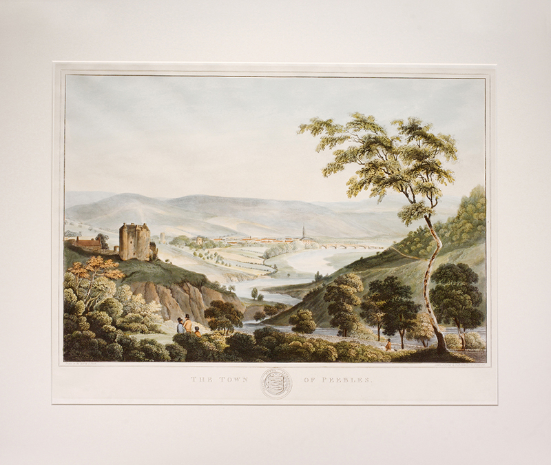 FIRST EDITION. 3 vols. Large oblong folio, title, index, engraved title, and 35 (of 36) hand-coloured aquatint plates. Photographic reproductions of the title leaf and list of plates. Each exquisite print is mounted and preserved in three folio-sized modern half red morocco cloth-backed albums, matching morocco gilt label and spine. Imprints suggest that the work appeared in several parts, and publication ceased before the general title was issued. "ONE OF THE RAREST OF PLATE BOOKS" (Tooley). The 36th plate of the Town of Tairn was published three years later than the others (in 1828) - the others are all dated between 1824-25. Coloured plates in order: Volume 1. Plates 1-12. 1. The Town of Dumfries. 2. The Town of Jedburgh. 3. **[A missing plate; The Town of Kirkudbright]** 4. The Town of Melrose. 5. The City of Edinburgh. 6. The Town of Linlithgow. 7. The Town of Peebles. 8. The Town of Lanark. 9. The Town of Hamilton. 10. The City of Glasgow. 11. The Town of Port-Glasgow. 12. The Town of Greenock. Volume 2. Plates 13-24. 13. The Town of Renfrew. 14. The Town of Paisley. 15. The Town of Ayr. 16. The Town of Dumbarton. 17. The Town of Falkirk. 18. The Town of Stirling. 19. The Town of Cupar. 20. The Town of St. Andrews. 21. The Town of Perth. 22. The Town of Inverary. 23. The Town of Rothesay. 24. The Town of Forfar. Volume 3. Plates 25-36. 25. The Town of Dundee. 26. The Town of Montrose. 27. The Town of Dunkeld. 28. The City of Aberdeen. 29. The Town of Peterhead. 30. The Town of Banff. 31. The Town of Elgin. 32. The Town of Inverness. 33. The Town of Cromarty. 34. The Town of Dingwall. 35. Gretna Green. 36. The Town of Tairn.