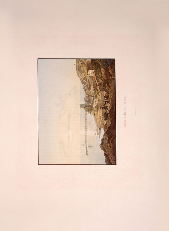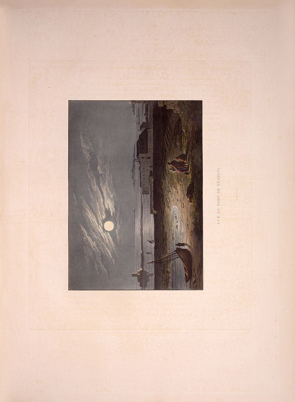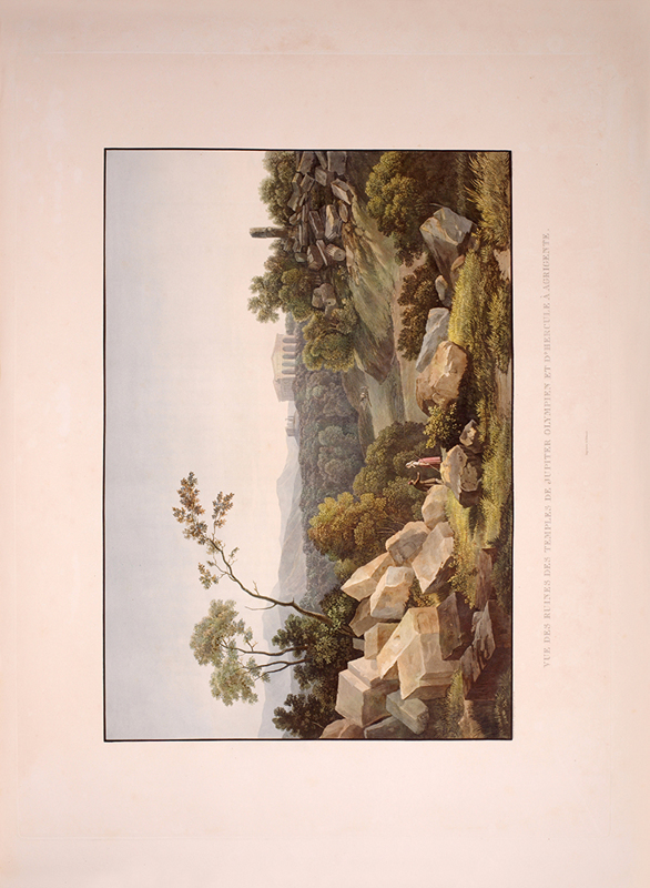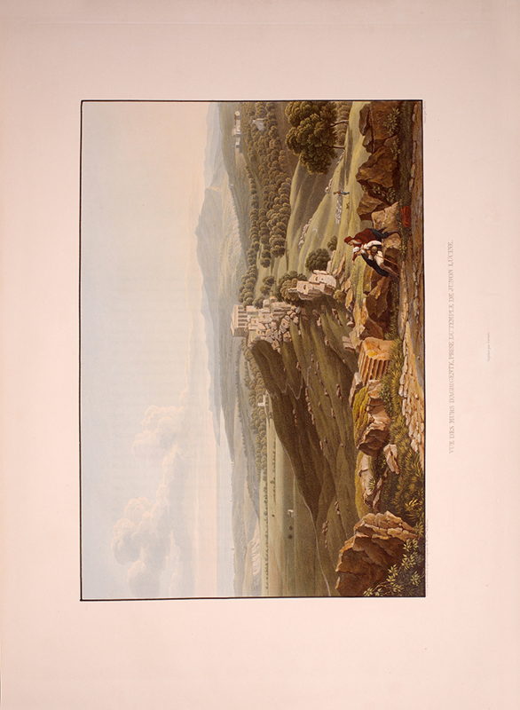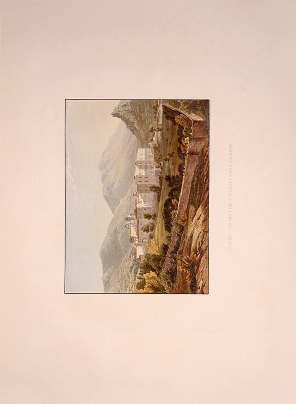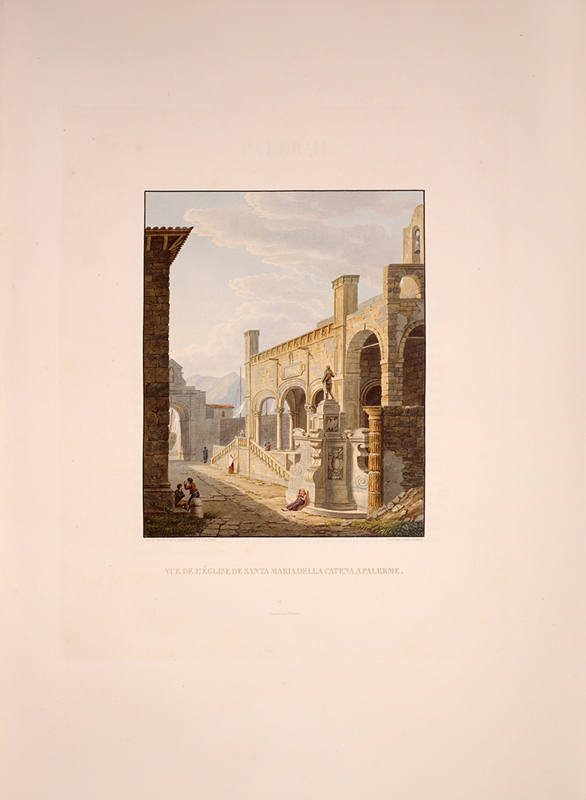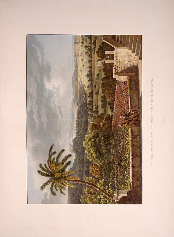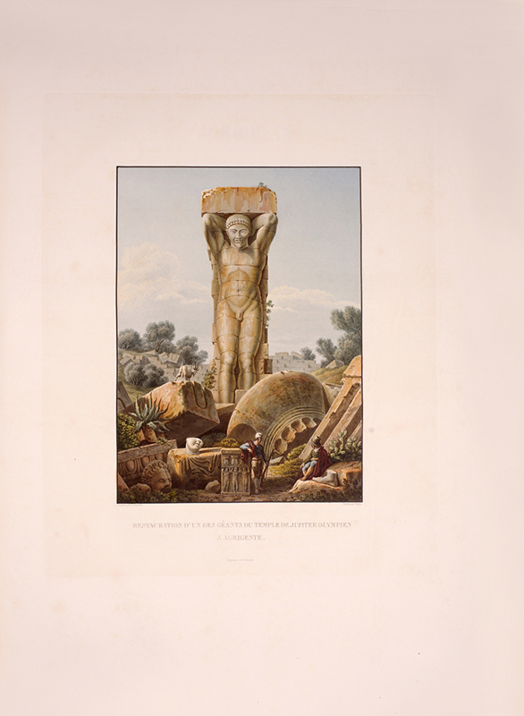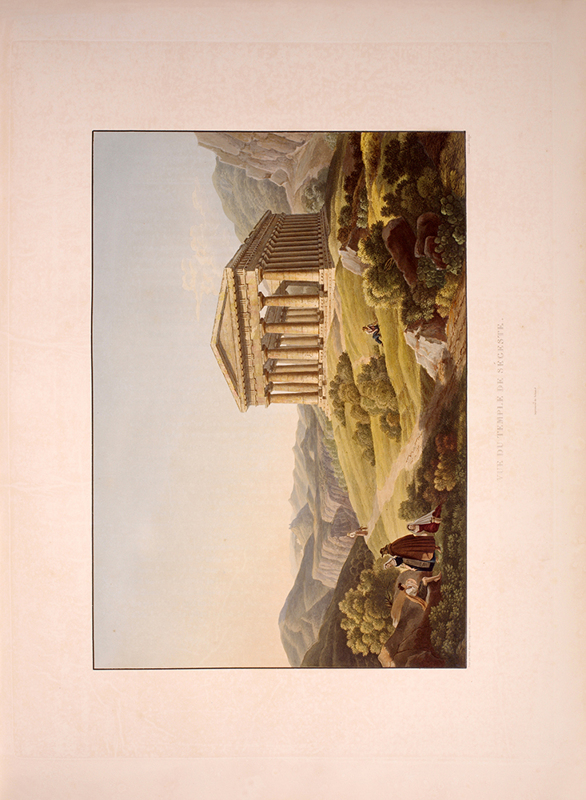 2 vols, large folio, two engraved maps of Sicily, one political and one physical; 92 hand-coloured aquatint plates, plate 37 is an uncoloured line engraving. In contemporary 1/2 red morocco over boards, with bands raised in gilt to spine, gilt lettered, and with marbled endpapers.The spine has been rebacked, and professionally repaired. Board extremities are lightly rubbed and worn. Bookplate of 'Giannalisa Feltrinelli' to front pastedown. An ambitious and great work. Rebinding and restoration work on this book was carried out by Ron Norman of Hartlepool (Ronnorn@aol.com) Coloured plates in order: Volume 1. 1. Vue de l'intérieur du Port de Palerme. 2. Vue de l'Entree du Port de Palerme. 3. Vue générale de Palerme prise des hauteurs de Santa Maria di Gesu. 4. Vue de la Cathedrale de Palerme. 5. Vue de l'Eglise de Santa Maria della Catena a Palerme. 6. Vue du Cloitre des Capucins a Palerme. 7. Vue extérieure de la Chapelle de Ste. Rosalie. 8. Vue de l'intérieur de la Chapelle et de la Grotte de Ste. Rosalie a Palerme. 9. Cloitre du Couvert de Ste. Maria di Gesu a Palerme. 10. Vue de la Bagaria et de la Baie de Palerme. 11. Vue d'un Aqueduct de la Bavaria aux environs de Palerme. 12. Vue du Couvent de St. Martin près Palerme. 13. Vue de Monreal. 14. Vue du Cloitre des Bénédictins a Monreal. 15. Vue de Sala di Partenico. 16. Vue du Theatre de Segeste. 17. Vue éloignée du Temple de Segeste. 18. Vue du Temple de Segeste. 19. Vue de l'intérieur du Temple de Segeste. 20. Vue du Port de Trapani. 21. Vue de l'ancien Port de Lilibee du Mont Erix. 22. Vue du Mont Eryx. 23. Vue des Carrieres de Campo Bello. 24. Ruines du Grand Temple a Selinunte. 25. Fragments des ruines d'un Temple de Selinunte. 26. Vue d'un Temple de Selinunte au bord de la Mer. 27. Vue du Couvent des Benedictines Sciacca. 28. Vue du Mont San-Calogero et des eaux thermales de Sciacca. 29. Vue de l'emplacement d'une partie de l'ancienne Agrigente. 30. Vue d'Agrigente, prise des hauteurs. 31. Vue des Murs d'Agrigente, prise du Temple du Junon Lucine. 32. Vue du Temple de Junon-Lucine et des debris des anciens Murs d'Agrigiente. 33. Vue des ruines des Temples de Jupiter Olympien et d'Hercule, a Agrigente. 34. Vue des ruines du Temple de Jupiter Olympien, a Agrigente. 35. Tete d'un des géants du Temple de Jupiter Olympien, a Agrigente. 36. Restauration d'un des géants du Temple de Jupiter Olympien, a Agrigente. 37. [uncoloured plate] 38. Vue du Temple de la Concorde, a Agrigente. 39. Vue latérale du Temple de la Concorde, a Agrigente. 40. Vue intérieure du Temple de la Concorde, a Agrigente. 41. Vue du Temple de Junon, a Agrigente. 42. Vue des Restes du Temple d'Esculape. 43. Vue du Tombeau de Theron a Agrigente. 44. Vue du Port de Gircenti. Volume 2. 45. Vue prise dans la Cavee d'Ispica. 46. Vue de Castello di Modica. 47. Vue de Syracuse prise du Theatre. 48. Vue d'un tombeaux antique dit le tombeau d'Archimede, a Syracuse. 49. Vue de la Cathedrale de Syracuse, ancien Temple de Minerve. 50. Vue intérieure d'une partie de la Cathedrale de Syracuse, ancien Temple de Minerve. 51. Vue de la Fontaine Arethuse, a Syracuse. 52. Escalier des Catacombes de l'Eglise de St. Jean a Syracuse. 53. Vue du Theatre de Syracuse. 54. Vue des Latomies des Capucins a Syracuse. 55. Vue des Grandes Latomies et de l'Oreille de Denys a Syracuse. 56. Vue intérieure des Latomies a Syracuse. 57. Vue des ruines du Temple de Jupiter Olympien, a Syracuse. 58. Vue de la Fontaine Cyane. 59. Vue de l'emplacement de la Maison de Timoleon, a Syracuse. 60. Vue d'un souterrain de l'Epipole, a Syracuse. 61. Vue des hauteurs de l'Epipole, a Syracuse. 62. Vue d'un tombeau antique près de Syracuse. 63. Vue de Catane. 64. Vue de la Chapelle de San-Salvatore, a Catane. 65. Entree du Musee du Prince Biscaris, a Catane. 66. Vue d'une Galerie de l'Amphiteatre de Catane. 67. Escalier du Theatre de Catane. 68. Vue des Ecueils des Cyclopes. 69. Vue de Jaci et du détroit de Messine. 70. Vue du Monte Rosso prise de San Nicolosi. 71. Vue de la Grotte des Chevres. 72. Vue de l'Etna de la Maison de Gemellaro. 73. Vue du Cratere de l'Etna. 74. Vue de l'intérieur du Cratere de l'Etna. 75. Vue d'une Gorge de l'Etna et du fiume Freddo. 76. Vue d'un Pont sur le Cantara. 77. Vue prise du Theatre de Taormine. 78. Vue de l'intérieur du Theatre de Taormine. 79. Vue de Taormine prise de Jardini. 80. Vue du Couvert des Capucins a Taormine. 81. Vue du Chateau de Saint-Alessia. 82. Vue de Messine. 83. Vue de Messine et des cotes de Calabre, prise des hauteurs du Télégraphie. 84. Vue de la Cathedrale et de la Place del Duomo, a Messine. 85. Chapelle souterraine dans la Cathedrale de Messine. 86. Vue de l'Etna et du Golfe de Milazzo. 87. Vue de ruines, a Tindare. 88. Vue du Golfe de Milazzo prise de Tindare. 89. Vue de Tusa. 90. Vue de Cefalu. 91. Vue de Termini. 92. Vue de la Baie de Termini.