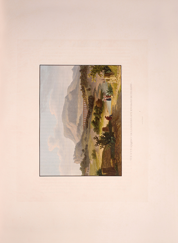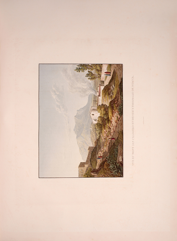 This is an extraordinarily rare copy of one of the most beautiful colour plate travel books having to do with Italy. The large and luminous views of Sicily in our two volumes capture the magic of the island as experienced by the traveller of the early 19th century. Sicily's well-preserved Greek temples are, of course, featured, but port scenes, Medieval churches, picturesque villages, and the interior of Etna's crater are also depicted, all in exquisite colour.
